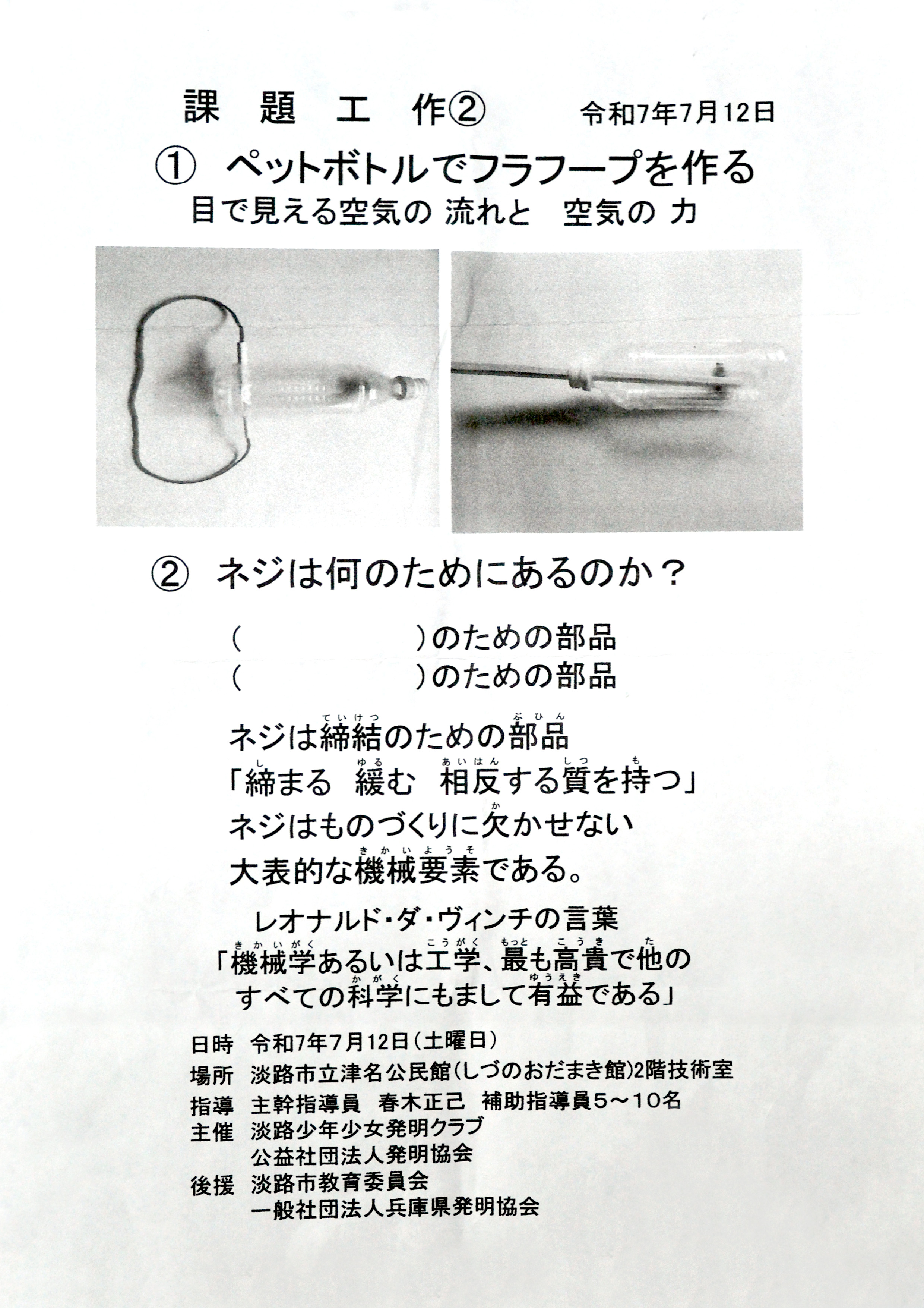 7月12日 (土) に、課題工作②「ペットボトルを使ってフラフープを作ろう」の活動が行われました。