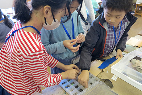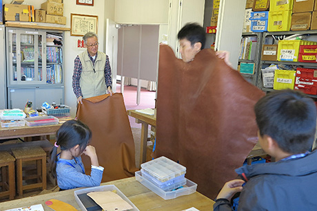 そのあと、色々な動物の革を実際に手に取り、手触りや模様などの違いを感じました。
