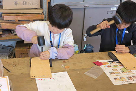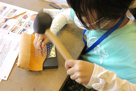 仕上がったペンケースには、名前や模様の刻印を打ち込み、オリジナル感をプラスします。