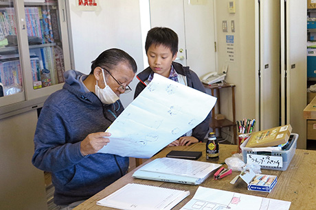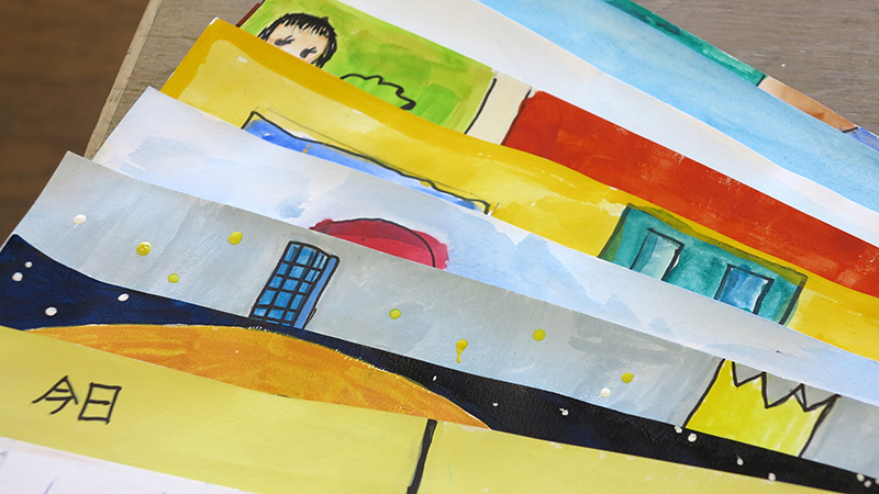 色使いの工夫や迷っている部分などは、指導員と相談しながら丁寧に進めていきます。