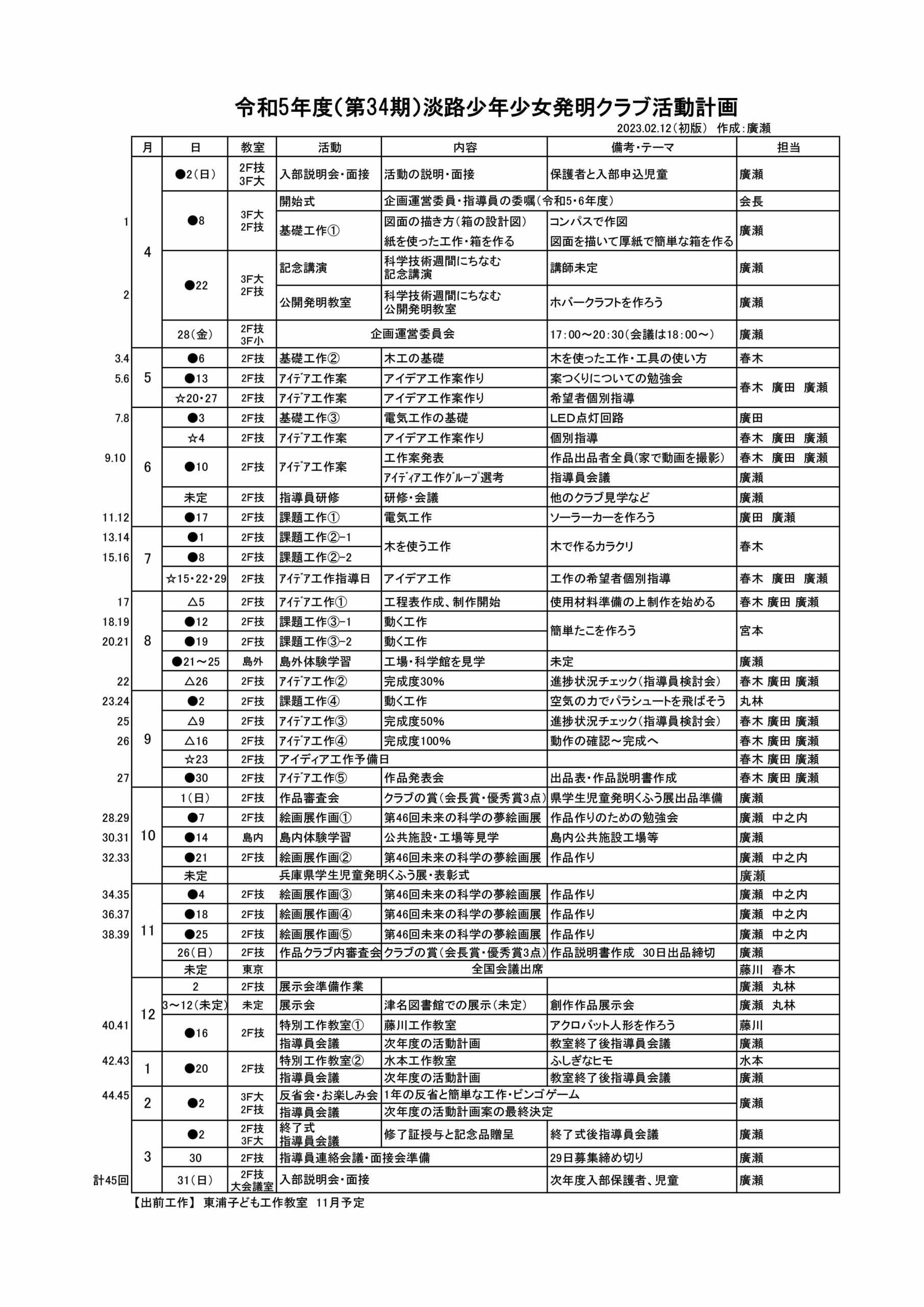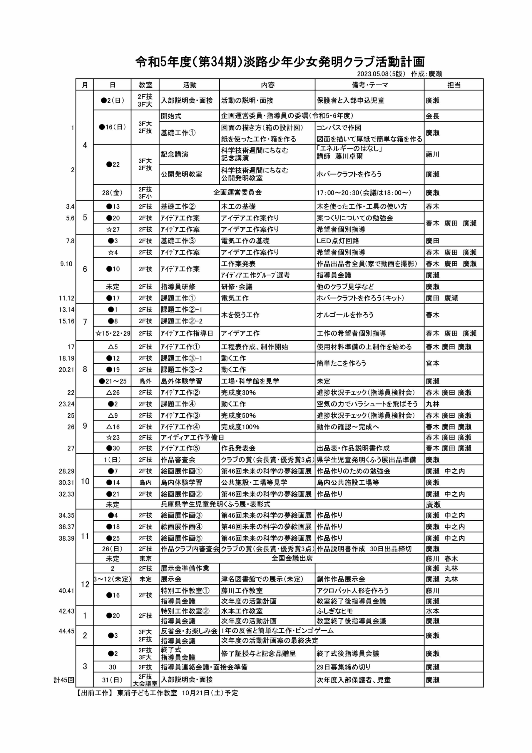 活動計画表[令和5年度・第34期]